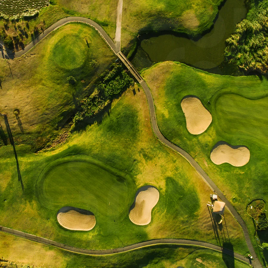 - Modelos 3D y topografía de detalle del campo (fairways, bunkers, greens, drenajes, etc.).